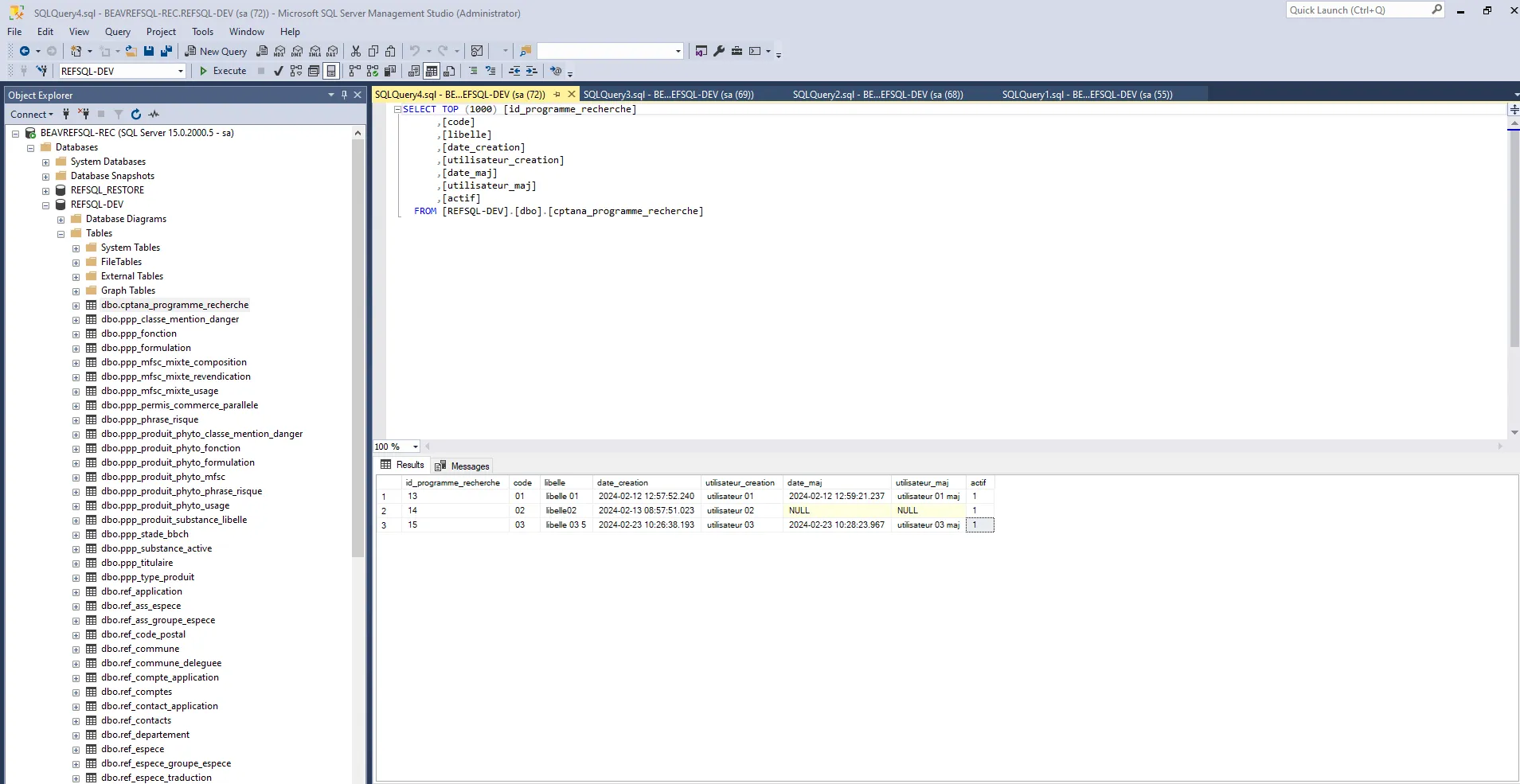 SQL for database management